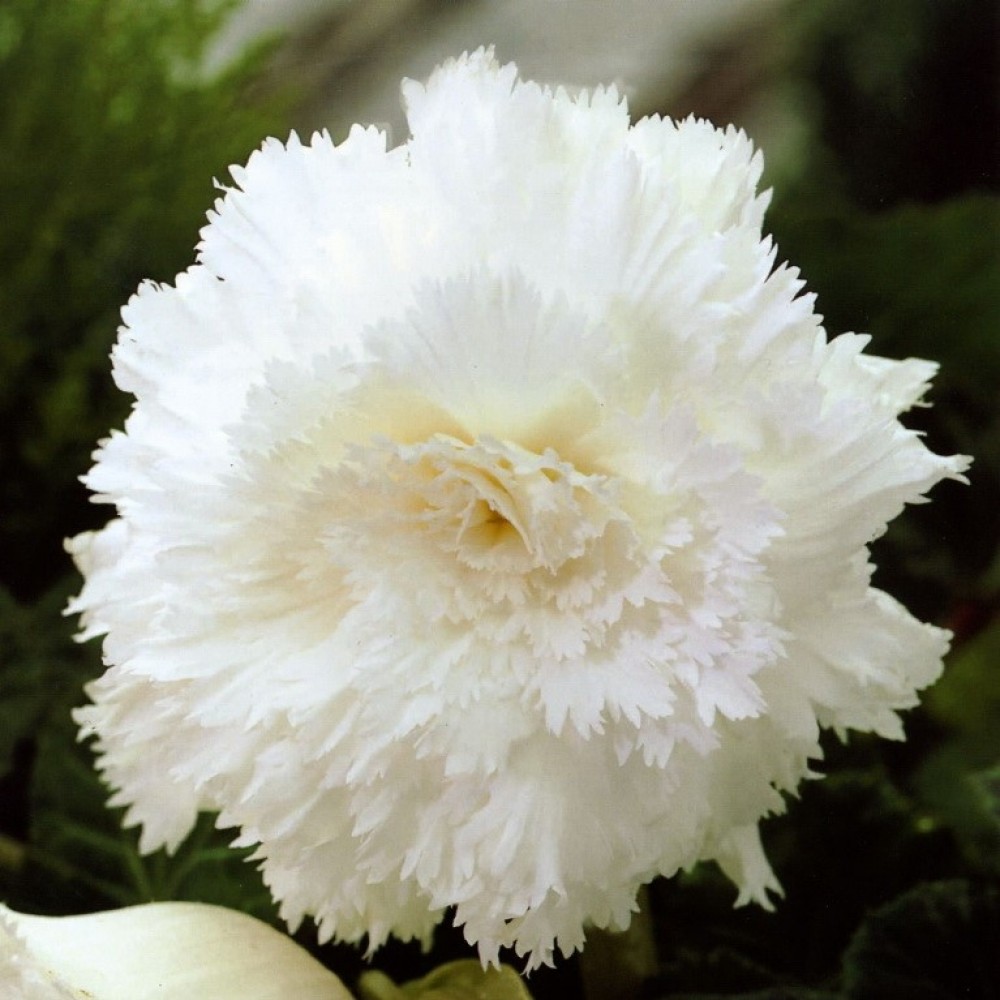 Бахромчатые цветы бегонии Вайт смотрятся роскошно. Края лепестков ажурные, очень похожие по насыщенности на гвоздики. Бутоны пушистые, объемные 13-15 см. Светло-зеленые листья замечательно оттеняют кипенно-белый цвет. Пора цветения традиционно приходится на период с июня и до октября. В это время рядом с посадкой распространяется слабый, но весьма приятный, сладковатый запах. Бегония бахромчатая Вайт любит полутень либо солнечные участки, является невысоким сортом, подходящим для выращивания в горшках.
