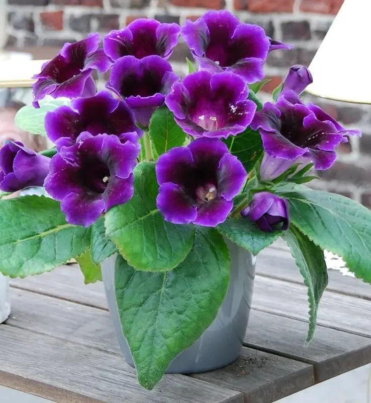 Клубни Глоксинии обыкновенной Виолацея (Gloxinia Violacea) на протяжении 10 лет будут радовать роскошными обильными «живыми» букетами, которые станут украшением комнат, балконов и террас. Многолетник любит приглушенное солнце, обязательный полив и подкормку на время цветения. Глоксиния Виолацея достигает 25 сантиметров в высоту, при этом обильная бархатная листва имеет широкие, овальные формы, а насыщенные пурпурные цветы в виде граммофончиков достигают 10-12 сантиметров. Каждый цветок цветет 10-15 дней, на одном растении может быть 50-100 цветов. К зиме растение скидывает листья и замирает, его следует убирать в темное место.