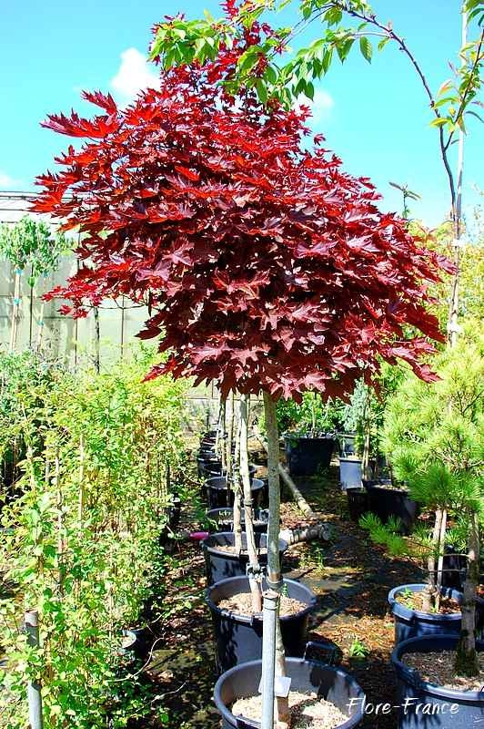 Листья пятилопастные, некрупные, при распускании – ярко-малиновые, летом – пурпурные, в тени – зеленеют.