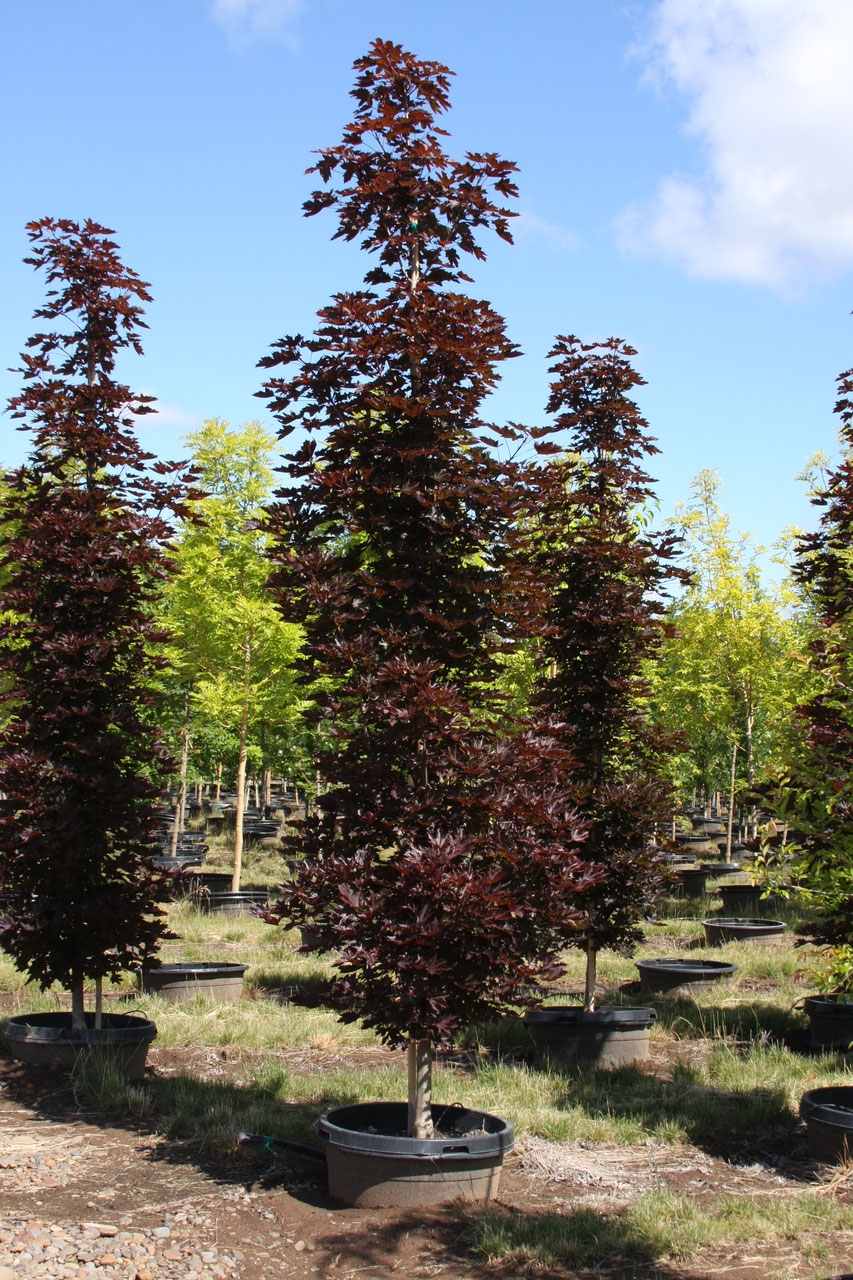 Саженцы клена остролистного Crimson Sentry – наиболее компактные из красных остролистов, хорошо приживающихся в городе. Подходят для высадки в парковых зонах и на придомовых ландшафтах.Дерево растет до 10 м, ширина кроны достигает 5 м. Форма кроны узкая колоновидная сильно разветвленная.Цветение начинается в мае распусканием душистых щитковидных соцветий из мелких желто-зеленых цветочков.Плод – красная крылатка.Достоинством клена остролистного Crimson Sentry станет окраска листвы в течение сезона: от ярко-малиновых весной, пурпурных летом и зеленых при снижении освещенности. Еще плюс – морозоустойчивость.