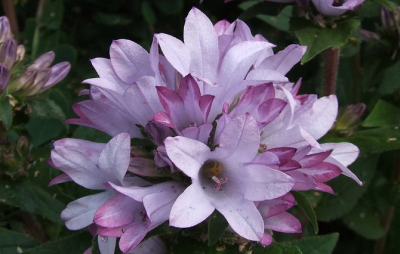 Вертикальные соцветия-кластеры из колокольчиков нежной розово-сиреневой расцветки! Более 15 колокольчиков в каждом соцветии! Универсальный многолетник не нуждается в особом уходе и предпочитает места с плодородной почвой и притенением в полуденные часы. Отлично смотрится на садовой клумбе и в центре контейнерной композиции. Нарядный букет из колокольчиков стоит в вазе около 2-х недель!