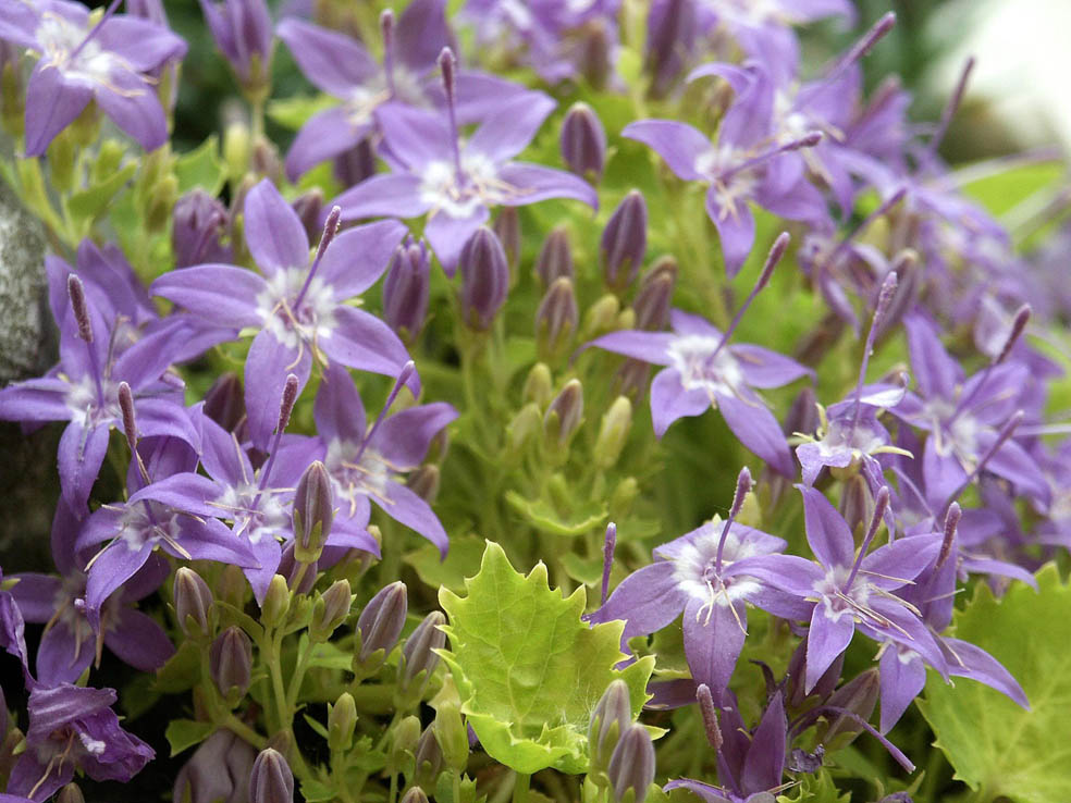 Колокольчик Diskon Gold выделяется контрастном голубовато-сиреневых звездчатых цветов на фоне яркой желто-салатовой сердцевидной листвы с зубчатыми краями. Обильно цветет. Нуждается в легкой, некислой, питательной почве. Полностью зимостоек при условии хорошего дренажа. Высота растения - 15 см. Период цветения с июня по июль, повторно зацветает в сентябре.