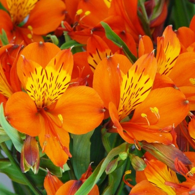 Альстремерия золотистая Ориндж Кинг (Orange King) внесет экзотические нотки в ваш цветник. Это изящное растение с июня до заморозков образует на стеблях кистевые соцветия с крупными цветами, похожими на тропических бабочек. У сорта Ориндж Кинг лепестки окрашены в насыщенный оранжевый цвет с высветленным жёлтым пятном в центре, на котором заметен тёмный мелкий крап. Высота альстремерии 1 метр, каждый цветок достигает в диаметре 7 сантиметров. Многолетник теплолюбив и нуждается в хорошо освещённом солнцем участке. На зиму в умеренном климате Альстремерию золотистую Ориндж Кинг необходимо утеплять.