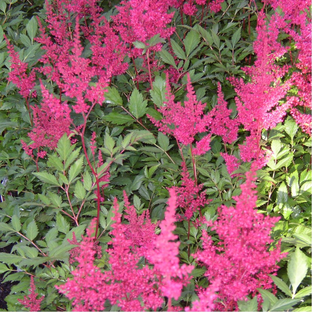 Астильба Арендса Лаки Дей - высота цветоносов 50 см. Цветки темно-розовые, в компактных соцветиях. Цветение обильное. Для посадки выбирают слегка затенённые места (лучше растут у водоёмов или во влажных полутенистых местах). Предпочитает плодородную влагоёмкую почву, хорошо удобренную перепревшим навозом. Размножают Астильбу Арендса Лаки Дей делением кустов весной или осенью. В конце сезона стебли астильбы обрезают на уровне грунта и мульчируют торфом или почвой.