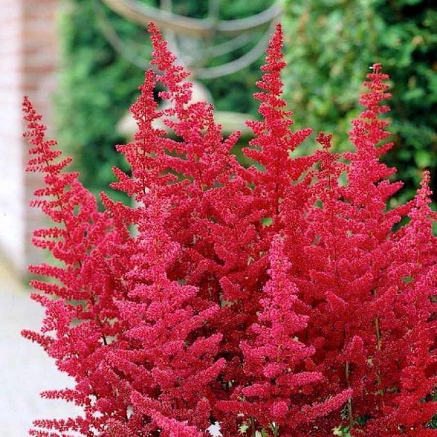 Астильба Арендса Радиус не превышает 80 см. в высоту. Садоводам нравятся это растение из-за неприхотливости в уходе и возможности цвести каждый год на протяжении десятилетий. Цветение длиться всего один месяц, за это время образуются крупные пирамидальные соцветия ярко-алого цвета, которые можно использовать, как основу букета. Нуждается в большом количестве солнечного света, но в жаркие дни лучше прятать многолетник в искусственном затемнении. Тип используемой почвы не имеет значения, главное, чтобы она все-время была влажной. Для ускорения роста и улучшения показателей Астильбы Арендса Радиус подойдут минеральные и органические удобрения.