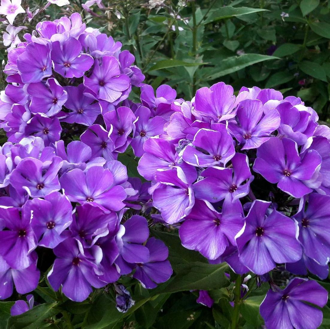 Флокс метельчатый Полина - цветок пурпурно-фиолетовый, вечером темнеет. Необычное горизонтальное соцветие. Высота Флокса метельчатого Полина - 60 см, диаметр цветка 4,2 см.