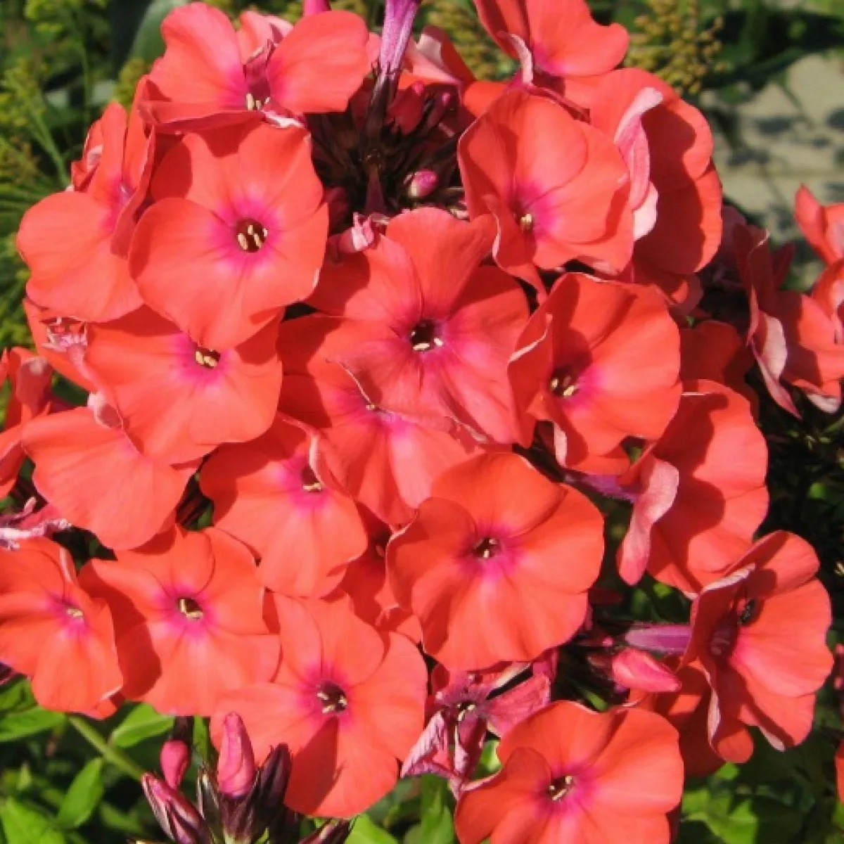 Флокс метельчатый Юник Ориндж - высота куста до 50 сантиметров. Период посадки весной или ранней осенью, лучшие сроки весенней посадки — первая половина мая, а осенней — третья декада августа — первая декада сентября. Цветки яркие, лососево-розовые с малиновым колечком в центре. Для посадки Флокса метельчатого Юник Ориндж выбирают слегка притенённые места, с влажной почвой, богатой питательными веществами и удобренной навозом. Флоксам необходимы подкормки, рыхления и обильный полив (почва должна быть всегда влажной, но не переувлажнённой).