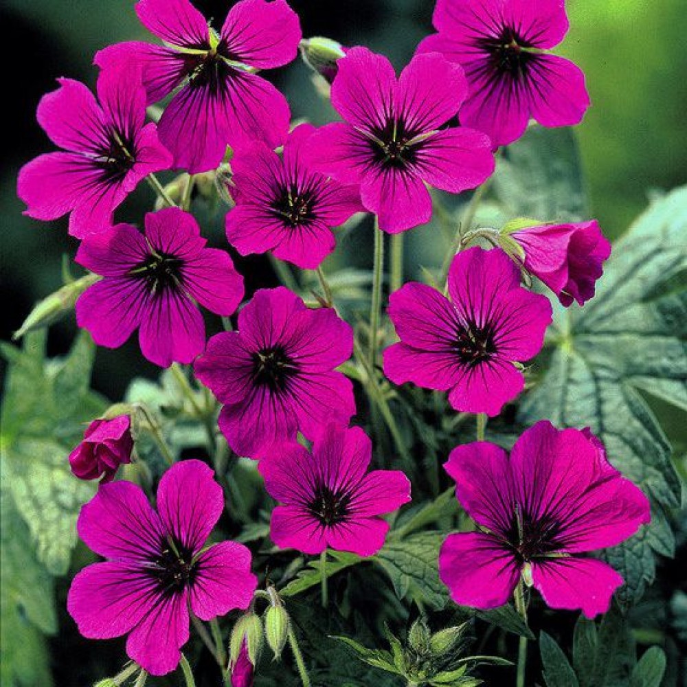 Герань гибридная Патриция относятся к декоративным сортам. Пышные кусты высотой до 70 см цветут обильно и продолжительно. На тонких стебельках распускаются яркие малиновые цветы с темно-бордовой серединкой. Неприхотливое растение широко применяется в ландшафтном дизайне, создании смешанных посадок и оформления садовых массивов.
