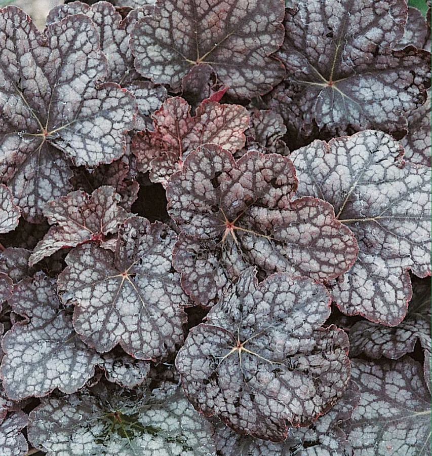 Гейхера (Хеухера) гибридная Аметист Мист (Heuchera hybrida Amethyst Myst) удивит садоводов и ландшафтных дизайнеров необычным цветом широких листьев. Сиренево-бордовые, покрытые большими серебристыми мазками, они прекрасно впишутся в резко очерченные миксбордеры, украсят бордюры и края садовых дорожек. Растение высотой 20-30 см зацветает в начале лета белыми мелкими цветочками на высоких цветоносах. Они практически не видны на фоне густоты и буйства красок листьев. Ковровые посадки Гейхеры (Хеухеры) гибридной Аметист Мист сохраняют яркость цвета до середины осени и зимуют в открытом грунте.