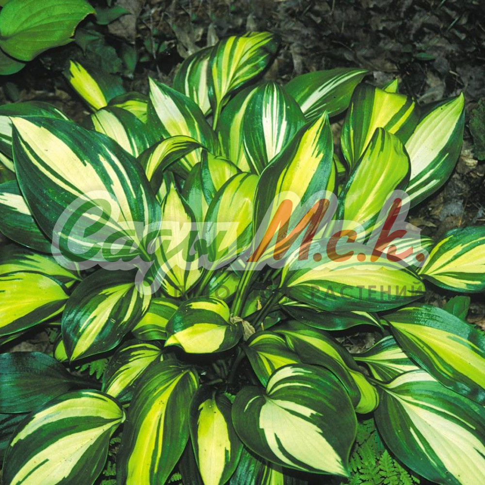 - Характеристики Куст среднего размера, быстро разрастается в ширину. Лист сердцевидный зеленый с нерегулярной, золотистой каймой, впоследствии кайма становится кремово-белой. Цветы белые