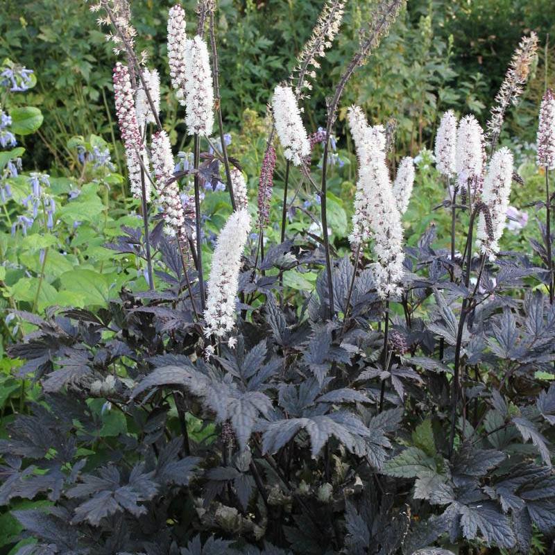 Клопогон ветвистый Чокохолик - цветки лилово-розовые, ароматные, в длинных соцветиях до 20 см.Листья эффектные, пурпурно-чёрно-бронзовые, лопастные. Высота растения до 90 см. Зимостойкий. Прекрасно смотрятся клопогоны в одиночной посадке или группой среди газона, в миксбордерах, создавая в них верхний ярус. Клопогон ветвистый Чокохолик широко используется в букетах, так как клопогон создает прекрасный ажурный фон, придавая осеннему букету легкость и изящество.