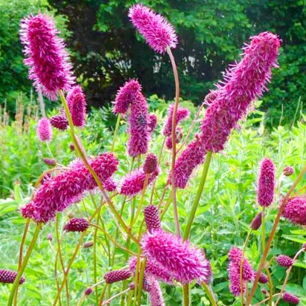 Кровохлебка Мензиса представляют собой растение высотой от 60 до 120 см, состоящее из разветвленных стеблей, зеленых листьев и необычных пурпурно-красных соцветий. Этот эффектный сорт используют для украшения прудов и искусственных водоемов. Он хорошо в самостоятельных и комбинированных посадках. Цветение начинается в мае или июне.