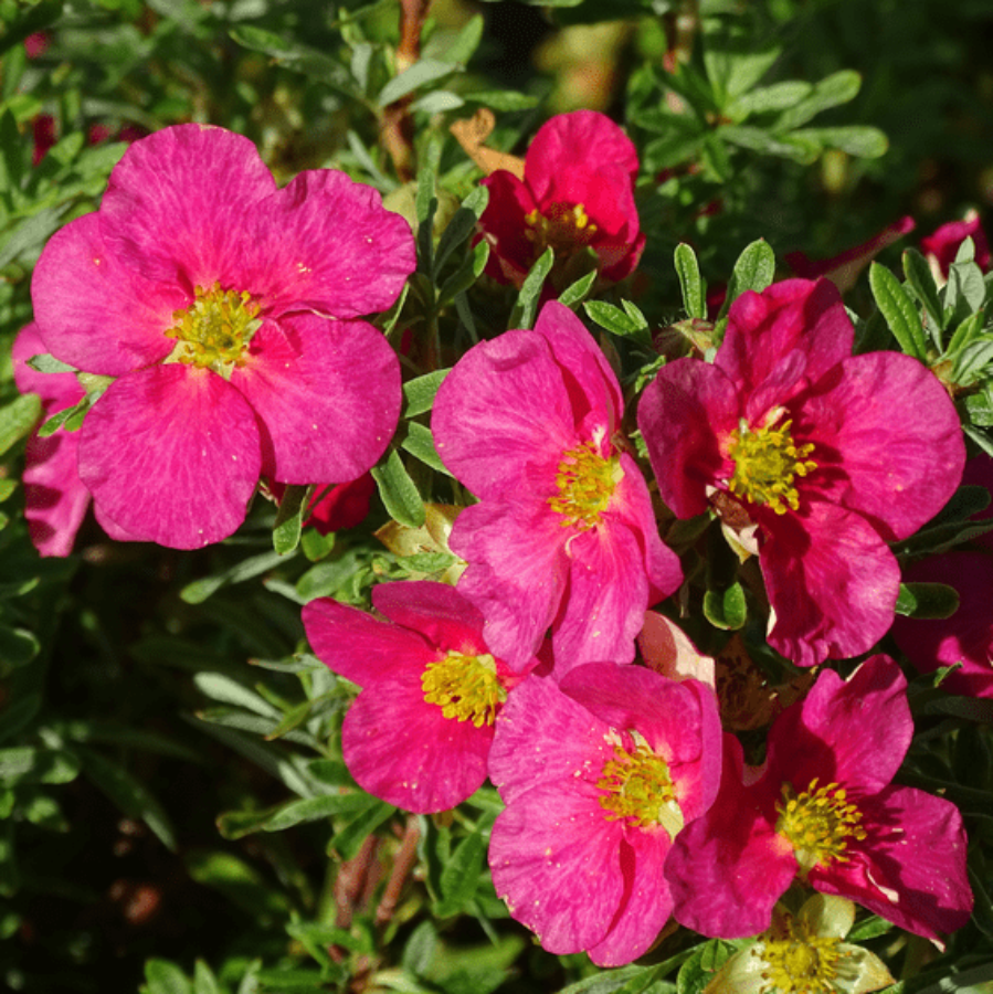 Лапчатка кустарниковая Данни Бой - многолетние низкорослое растение. Удивительно вынослива, устойчива к заболеваниям и очень красива. Она украсит собой любой ландшафт и интерьер. Растение неприхотливое, с волнистыми полукруглыми яркими цветами розово-малинового цвета. Куст крепкий, состоит из множества маленьких веточек. Каждая веточка формируется в форму лапки. Листья состоят из 3-7 листочков, палитра от светло - зеленого до серебристого оттенка. Для лапчатки Данни Бой нужно выбирать дренированную, плодородную почву. Поскольку растение светолюбивое, его высаживают на хорошо освещенном месте, но прямые солнечные лучи для него вредны. Лапчатка кустарниковая Данни Бой прекрасно подходит для создания альпинария и оформления бордюров, клумб, цветников. Лапчатка легко контактирует со стелющимися многолетниками и интересно смотрится в живых изгородях.