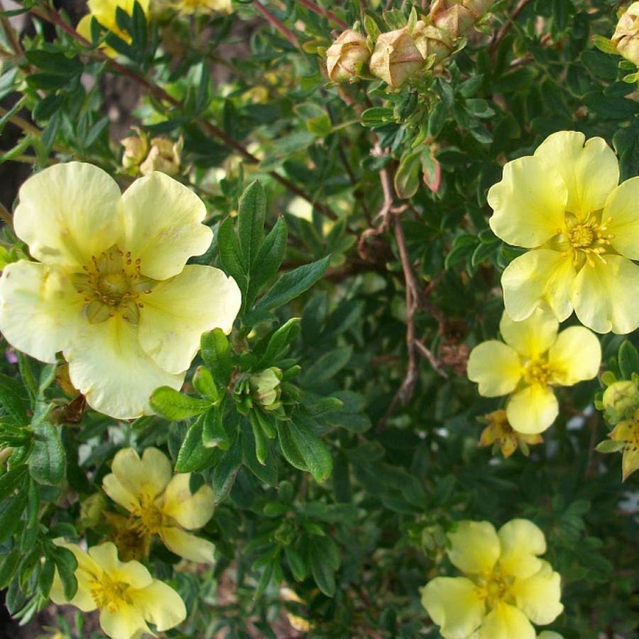 Лапчатка Maanelys - подушковидный кустарник с густой кроной. Его высота – 1-1,5 м, диаметр кроны – 1,5м. Цветет с июня по сентябрь, цветки кремово-белые. Рекомендуется для живой изгороди, одиночных и групповых посадок. Сорт отличается высокой зимостойкостью.