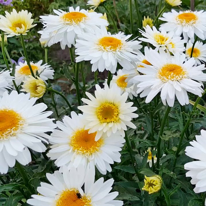 Нивяник наибольший Санни Сайд Ап (Chrysanthemum leucanthemum maximum) – хорошее приобретение для любого садовода. Это многолетнее декоративное растение, способно стать настоящим украшением любого участка. Chrysanthemum leucanthemum maximum представляет собой крупные соцветия из белых ромашек с желтой сердцевинкой. Нивяник наибольший Санни Сайд Ап имеет высоту до 100 см, диаметр цветка доходит до 12 см. Кроме того растение обладает отличным ароматом. Цветет нивяник с июня и до холодов. В уходе неприхотлив, почвы подходят любые, любит хорошо освещенные участки. Нивяник наибольший Санни Сайд Ап не требует частого полива. Размножать можно саженцами, черенками, делением куста.