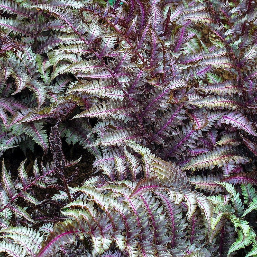 Кочедыжник японский Металликум - куст до 50 см высотой. Приобрел особую популярность за высокодекоративные листья с металлическим блеском и красно-багряными тонами на стебле и вокруг него. Кочедыжник японский Металликум зимостоек. Предпочитает расти в тени, но для проявления его красноватых расцветок растение должно получать немного солнца - лучше, если это будут утренние лучи до полудня. Кочедыжник японский Металликум любит рыхлую, богатую гумусом кисловатую почву (pH 5) и обилие влаги.