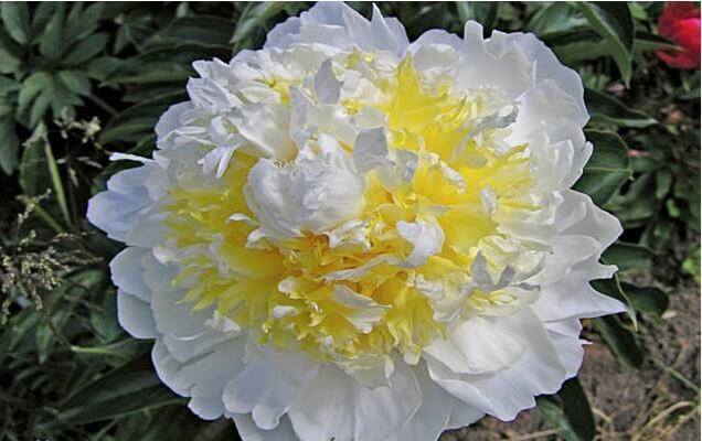 Травянистый пион Chedder Cheese бомбовидный. Кремовые большие лепестки выглядят так забавно в сочетании с желтыми петалодиями внутри бутона . А крупные, чуть удлиненные, темно-зеленые листья создают прекрасный фон для чудных соцветий, искрящихся на солнце. Этот пион характеризуется средне-поздним сроком цветения. Высота 95 см. Размер цветка 16 см.
