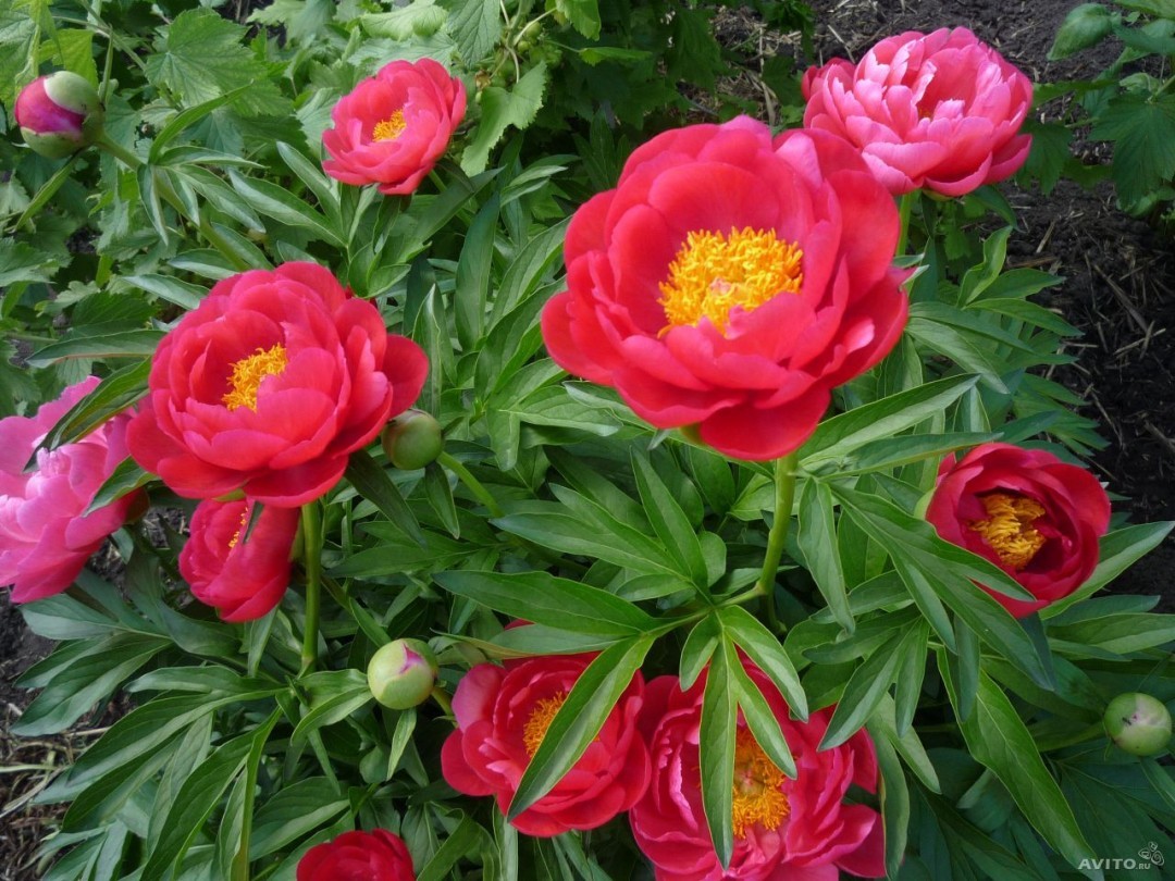 Саженцы пиона Ellen Cowley относятся к полумахровым гибридам, он эффектно смотрится в любом уголке сада. В самом начале цветения бутоны имеют ярко-красную окраску, которая затем меняется на темно-розовый оттенок. В диаметре соцветия достигают четырнадцати сантиметров. Саженцы постепенно формируют густой и раскидистый куст высотой до одного метра. Стебли очень прочные и мощные, они имеют светло-зеленый цвет. Данный сорт обладает резким цветочным запахом, который хорошо распространяется по всему саду. Пион Ellen Cowley не нуждается в особом уходе и может хорошо произрастать на любой почве.