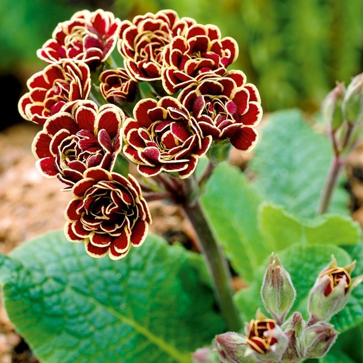 Примула гибридная Элизабет Киллелэй - высота растения 15-20 см. Цветки темно-вишневые с золотистой каймой, густомахровые, ароматные. Большого ухода примулы не требуют. В рыхлой земле быстрее образуются корни у молодых розеток. В течение вегетационного сезона растения подкармливают три раза. Первую подкормку проводят рано весной, вторую - через 2-3 недели, третью - в конце июля-середине августа фосфорно-калийными удобрениями. Примулы очень отзывчивы на внесение навозной жижи в течение вегетационного сезона. Ежегодно под Примулу гибридную Элизабет Киллелэй подсыпают 2-3 см рыхлой питательной земли, а еще лучше этим слоем покрыть всю площадь, занятую растениями.