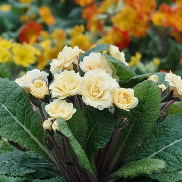 Примула обыкновенная Крем дю Трегор - высота растения 10-15 см. Цветок махровый, кремовый с легким медовым оттенком. Большого ухода примулы не требуют. В рыхлой земле быстрее образуются корни у молодых розеток. В течение вегетационного сезона растения подкармливают три раза. Первую подкормку проводят рано весной, вторую — через 2—3 недели, третью — в конце июля—середине августа фосфорно-калийными удобрениями. Примулы очень отзывчивы на внесение навозной жижи в течение вегетационного сезона. Ежегодно под Примулу Крем дю Трегор подсыпают 2—3 см рыхлой питательной земли, а еще лучше этим слоем покрыть всю площадь, занятую растениями.