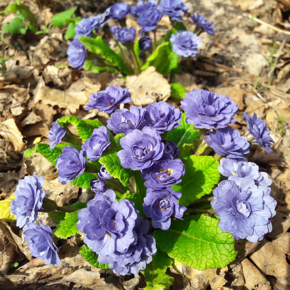 Примула обыкновенная Винтаж - высота растения 15-20 см. Махровый, обильноцветущий сорт, лепестки бледно-голубые с тонкими фиолетовыми прожилками, очень нежный. В рыхлой земле быстрее образуются корни у молодых розеток. В течение вегетационного сезона растения подкармливают три раза. Первую подкормку проводят рано весной, вторую — через 2—3 недели, третью — в конце июля—середине августа фосфорно-калийными удобрениями. Примула Винтаж очень отзывчива на внесение навозной жижи в течение вегетационного сезона. Ежегодно под кустики примул подсыпают 2—3 см рыхлой питательной земли, а еще лучше этим слоем покрыть всю площадь, занятую растениями.