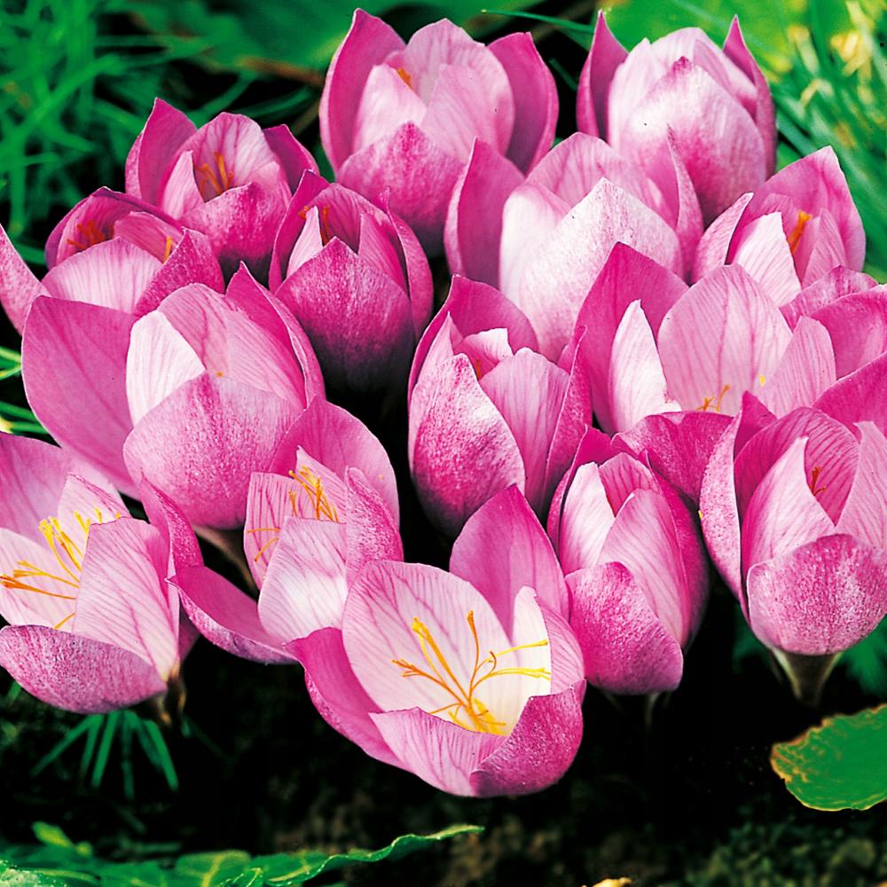 Луковицы крокуса Зонатус (Zonatus) порадуют ярким цветением в осенние погожие месяцы. В отличие от классического шафрана, этот сорт зацветает в сентябре–октябре. Эффектные бокалы темно-розового цвета с золотистыми серединками яркими огнями освежат осенний сад. Цветки распускаются в чаши диаметром до 6 см. Прикорневые зеленые листья появляются после цветения. Луковицы прекрасно переносят зиму, но нуждаются в укрывании листвой или торфом.