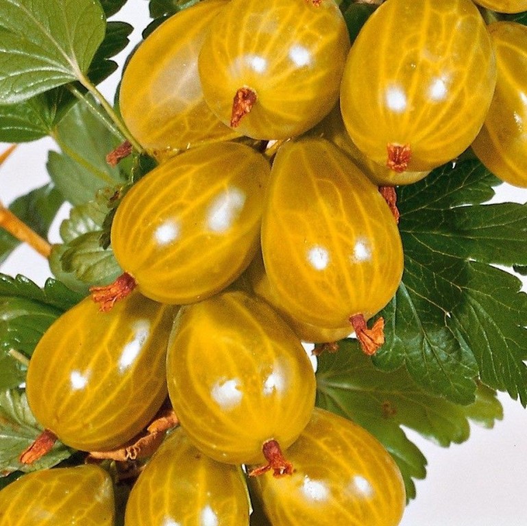 Саженцы крыжовника Английский желтый в настоящее время пользуются большой популярностью. Это наиболее распространенный сорт крыжовника в нашей стране. Хозяйственная ценность этого сорта заключается в обильной ежегодной урожайности, в отличном качестве ягод, в высокой зимостойкости и слабой поражаемости сферотекой. Помимо этого, пряморослая форма кустов существенно облегчает обработку почвы. Хотя зимостойкость высокая, но в отдельные, суровые зимы наблюдается подмерзание верхушек. Урожайность сорта ежегодная и обильная. Средняя урожайность с одного гектара составляет 13 т. Созревание ягод дружное, они держатся на кусте долго, без изменения вкусовых качеств. Крупномер Английский желтый имеет ягоды желтого цвета, очень вкусные, сладкие. Достоинства сорта: высокие вкусовые качества ягод, высокая урожайность.