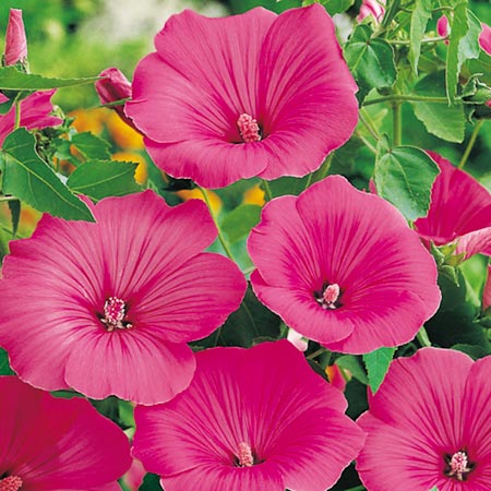 Лаватера Loveliness - однолетнее травянистое растение, образующее густые, широкоокруглые кусты 0,8-1,2 м высоты. Листья округлые или почковидные, глубокосердцевидные, шершавые, слабо трех-пятилопастные, на длинных черешках. Цветки до 10 см диаметром, воронковидные, одиночные в пазухах листьев, более плотно собранные на верхушке побегов, удивительно теплого и насыщеного густо розового цвета.