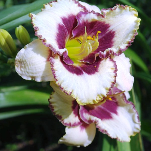 Саженцы лилейника Bоrder Musiс нетребовательные, имеют прекрасные белые цветы с кремовым отливом. Округлая форма с гофрировкой внутренних лепестков. Большой темный, вишневый глаз посредине. Диметральный размер – 15 см. Светлый, кремово – розоватый бутон и шикарный двухцветный кант по краю с сильной гофрой - красивый современный гибрид. У крупномера Bоrdеr Musiс обычно долгое обильное цветение. Тетраплоид. Следует учитывать, что куст быстро разрастается и необходимо оставлять место для разрастания и достаточного питания куста. Его высота составляет не менее 65 см.