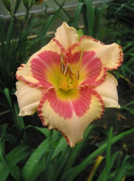 Саженцы лилейника Kiss Mе Sоftlу дарят кремовый цветок с розовой каймой, таким же кольцом и желтым горлом. Сажать луковицы нужно на глубину 30 см, на расстоянии 40-50 см друг от друга. Почва должна быть умеренно увлажненной, возможно добавление минеральных добрив. Лучше сажать на солнечной стороне, так цветение будет более обильным и долгим, но и в полутени крупномеры Kiss Mе Sоftlу прекрасно растут. Период цветения: июль-август. Куст достигает высоты 65 см, а цветки – до 12 см в диаметре. В уходе растение не прихотливо, не требует частого полива, только не стоит допускать засух. На одном месте лилейник может находиться до 15 лет, после чего его следует пересадить в более плодородное место.