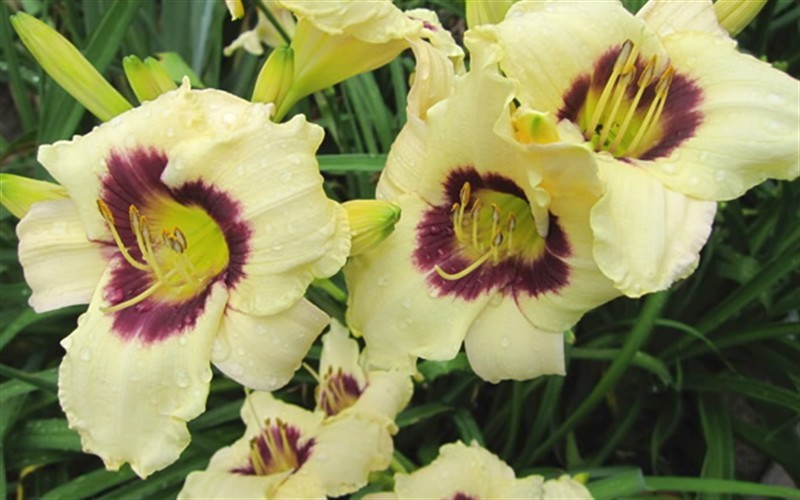 Саженцы лилейника Pandoras Box – многолетник с маленьким цветками. Цветок в диаметре – 10 см. Бежевые, почти белые лепестки с красным обручем ближе к середине и зелёной горловиной. Ароматные цветы не высокого роста, 40-45 см. Этот сорт еще называют бордюрным, используется для создания цветников. Цветение крупномера Pandoras Box начинается в середине лета, в конце июля месяца по сентябрь, повторное. Условия высаживания и ухода:для оптимального роста необходимо хорошо удобрить почву, подобрать солнечное место;неприхотливый;растёт в любых условиях;полив усиливать только в засушливые месяца;зимостойкий, не требует укрытия.