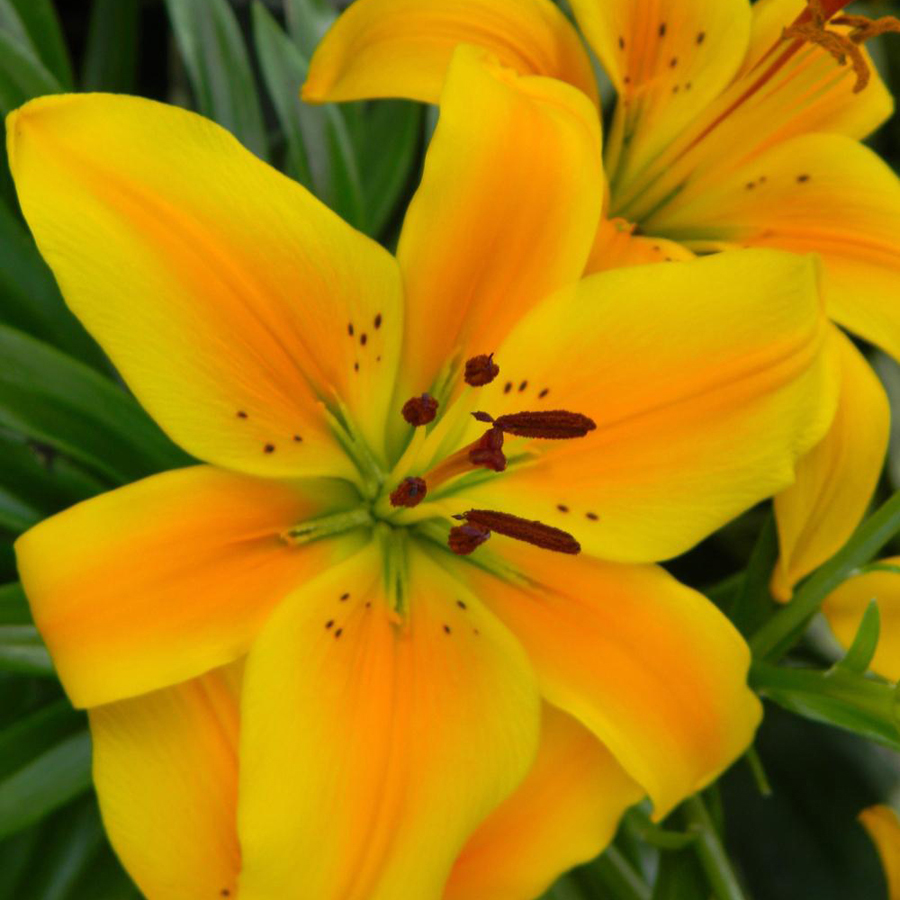 Лилия азиатская горшечная Голден Джой (Lilium asiatic Golden Joy) отлично адаптируется после посадки. Осенью у них наступает период покоя, а весной они пробуждаются и радуют владельцев прекрасными цветоносами. Голден Джой относится к низкорослым (до 40 см) горшечным сортам, то есть прекрасно будет себя чувствовать и в комнате, и на балконе летом. Лилия отличается насыщенным желтым цветом, оригинальности растению придает оранжевый центр и мелкий крап у основания. Лилия азиатская горшечная Голден Джой неприхотлива, легко поддается размножению и не требует особенных знаний в цветоводстве. Цветение наступает ежегодно в июне-июле.