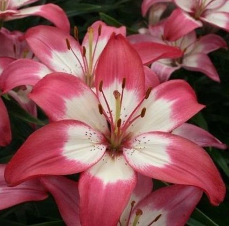 Луковицы Лилии азиатской Перфект Джой (Lilium asiatic Perfect Joy) генетически относятся к низкорослым сортам. Высота взрослого растения не превышает 45 см, благодаря чему данный вид может выращиваться не только как садовое, но и как комнатное горшечное растение. Необычный окрас привлечет внимание всех фанатов лилий: палево-темно-розовые цветки имеют кремово-белый центр и покрыты редким темным крапом. На одном цветоносе, в зависимости от размера луковицы, распускается от 3 до 8 бутонов. Цвести лилия начинает в середине июля и радует своей красотой в течение почти 4 недель. Лилия азиатская горшечная Перфект Джой отлично переносит холодные зимы.