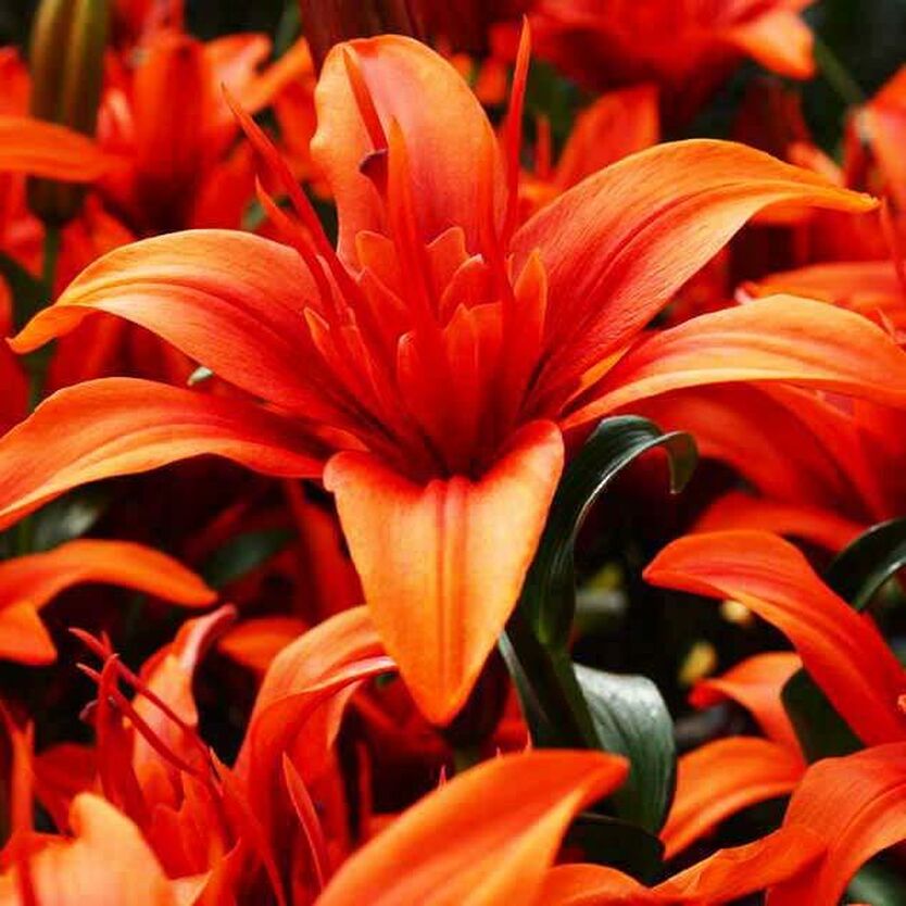 Луковицы Лилии азиатской махровой Крейзи Твин (Lilium asiatic Crazy Twin) относятся к редким и удивительным по своей окраске сортам. Крупных (до 18 см в диаметре) цветков как будто коснулись языки пламени, на лепестках в период полного раскрытия можно одновременно наблюдать оранжевые и желтые переливы. Такое сочетание красок порадует всех, кто стремится разнообразить палитру своего садового участка. Лилия азиатская махровая Крейзи Твин, как и другие азиатские гибриды, способна и быстрому и легкому размножению, неприхотлива в уходе и отличается морозостойкостью. Подходит для выгонки вне сезона.