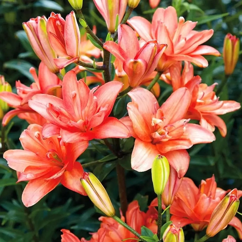 Лилия азиатская махровая Себ Латте (Lilium asiatic Ceb Latte) - редкий многолепестковый сорт. Растение не очень крупное, невысокий стебель поднимается не выше 70 см, на нем располагается по несколько средних цветков. Экзотичности добавляет специфическая лососевая расцветка. Белая размытая полоса на волнистых лепестках создает ощущение пышности.
