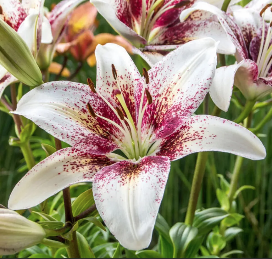 Луковицы Лилии азиатской Трайбал Кисс (Lilium asitic Tribal Kiss) ― посадочный материал для тех, кто не хочет выбирать между нежными и экспрессивными расцветками. В этом сорте объединены два оттенка: белый и насыщенный бордовый, рассыпающийся крапом по кончикам лепестков. «Изюминкой» лилии являются светло-зеленые тонкие отметины, проходящие по центру изящно выгнутых, с атласным блеском, лепестков. Окраска Лилии азиатской Трайбал Кисс не вызывает сомнений в ее аристократическом происхождении, а элегантность завораживает самых искушенных поклонников лилий.