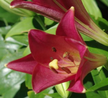Лилия Divini - декоративный сорт с очень приятным ароматом. Цветки крупные (до 14 см в диаметре), трубчатые, пурпурные. Края лепестков слегка закручены. Кончики загнутые. Нектарники пурпурно-красные; рыльце пятнистое, пурпурное. Высота растения 90 см. Сорт используется для срезки, групповых и одиночных посадок.