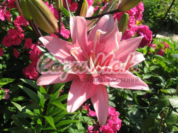 Лилия азиатская махровая Элоди (Lilium asiatic Elodie) обязаны быть на вашем садовом участке, поскольку такие шикарные цветы приносят неимоверное удовольствие от наслаждения первозданной красотой. Представленный сорт выделяется не только объемностью своих форм, но и необычным контрастным оформлением. Нежно-розовые махровые лепестки сверху немного меньше в размерах по сравнению с нижними, чем создается эффект многоярусности. В центре крупных цветоносов с темными четкими крапинками и отогнутыми волнистыми краями, направленными вверх, располагаются шикарные тычинки. Обрезав пыльник, расположенные на них, можно продлить сроки цветения Лилии азиатской махровой Элоди.