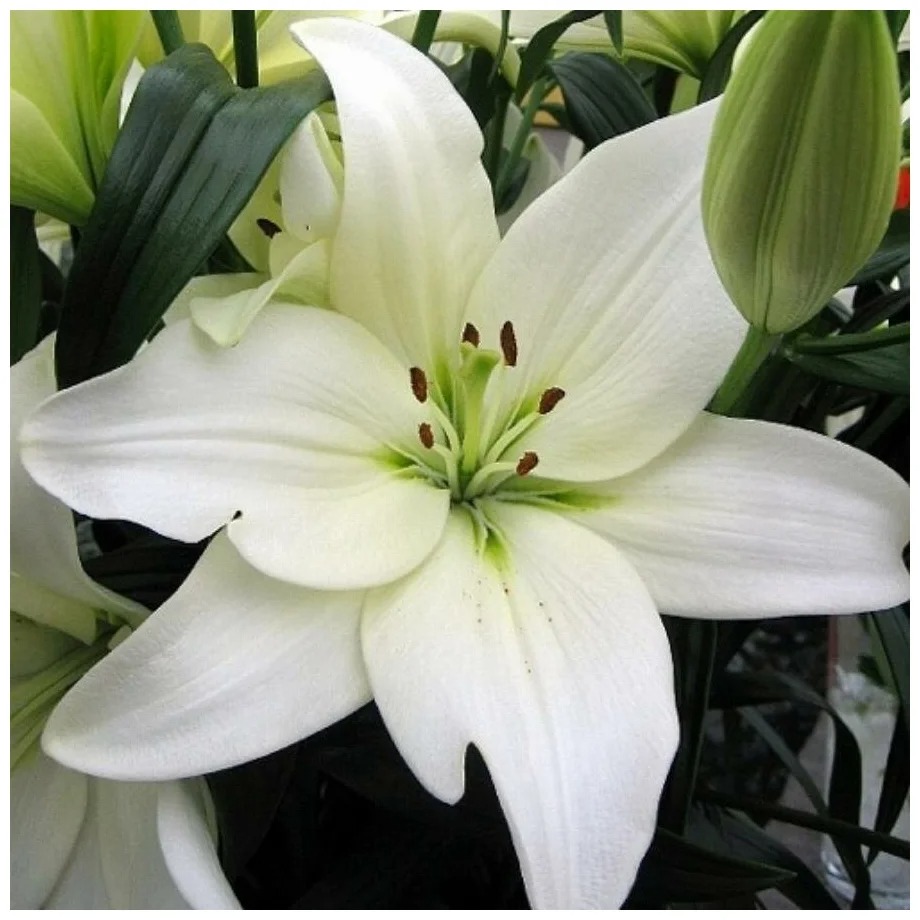 Луковицы Лилии ЛА-гибрид Бах (Lilium LA-hybrids Bach) расцветают в первой половине июля, образуя кубковидные цветки белоснежного цвета с сердцевиной насыщенного желто-зеленого оттенка. Распускаясь, лилия удивляет большим количеством (до 10) бутонов с ненавязчивым сладковатым ароматом. Долгий срок цветения позволяет любоваться растением в течение двух-трех недель. Лилия ЛА-гибрид Бах вырастает до 120 см, требует достойного окружения. Классический внешний вид идеальных белоснежных цветков удачно сочетается с розами насыщенных оттенков или выгодно подчеркивается сочной зеленью кустарников. Идеально подходит для создания праздничных букетов.