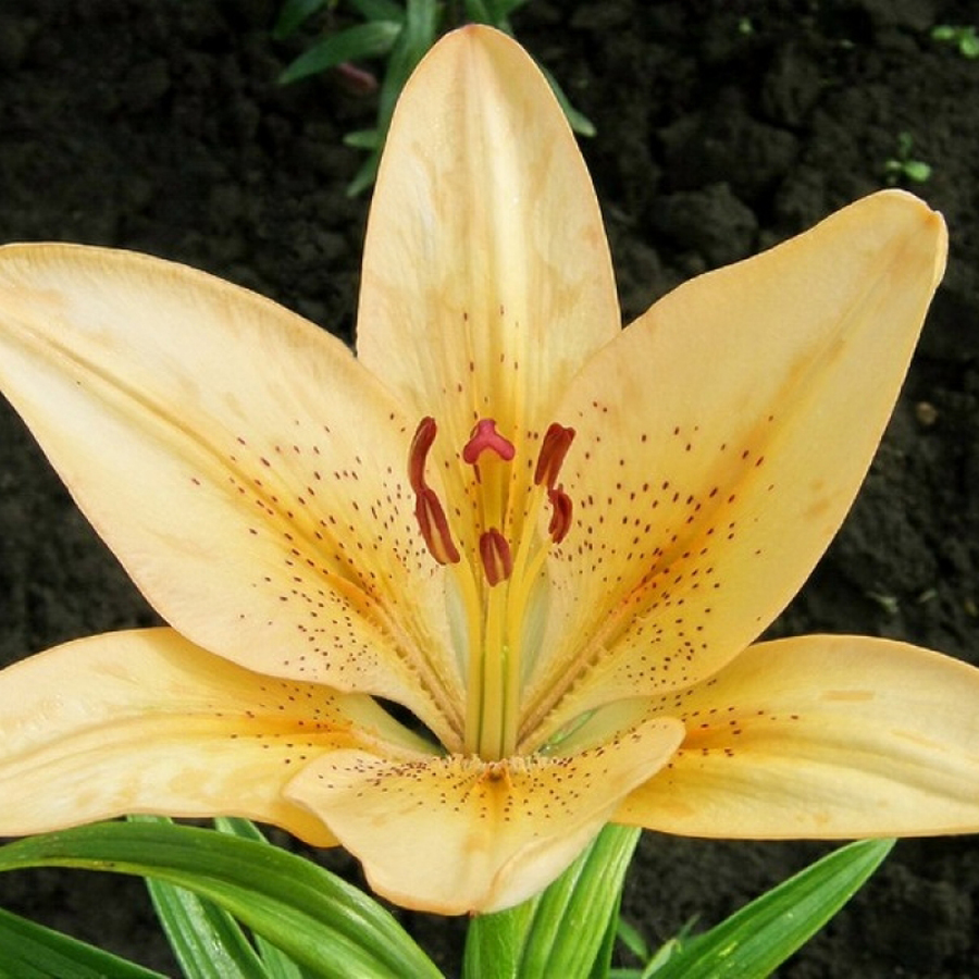 Лилия ЛА-гибрид Боллрум (Lilium) не будет выделяться в саду или на клумбе, спрятавшись за своим спокойным внешним видом. Боллрум - среднерослое растение со стеблем, не вырастающим выше 1 метра. Листва густая, зеленая, без глянца. Цветонос состоит из нескольких цветков традиционного оттенка крем-брюлле. Более темная полоса внутри лепестков и коричневые вкрапления гармонично дополняют классические формы.
