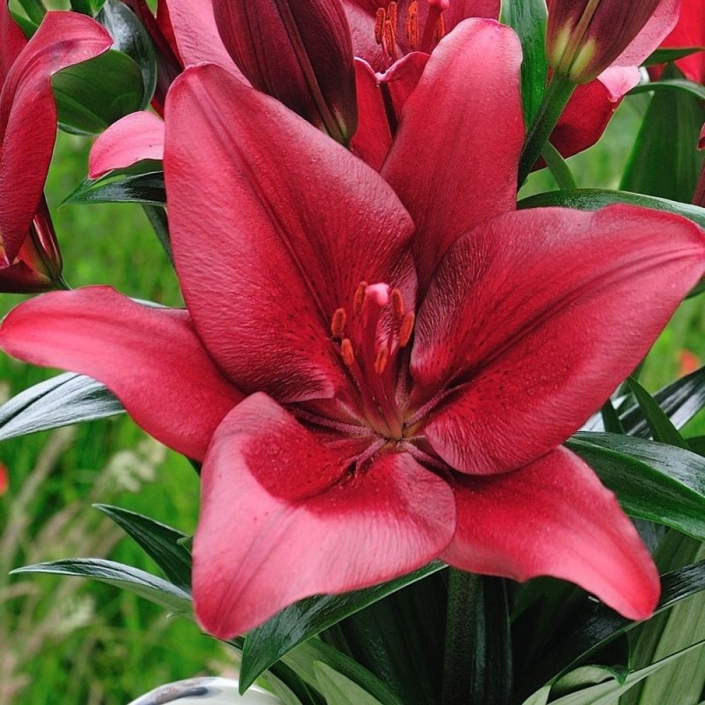 Лилия Forza Red – это прекрасное, высокое декоративное растение, которое относится к гибридам семейства Лилейные. Высота взрослого растения достигает 130-140 см. На крепких, мясистых стеблях располагаются достаточно крупные, глянцевые листья темно-зеленого цвета. На самой верхушке стеблей располагаются большие ярко-красные цветки, которые направлены в стороны. Цветки обладают приятным ароматом. Цветение наступает в начале июля и длится почти до сентября.