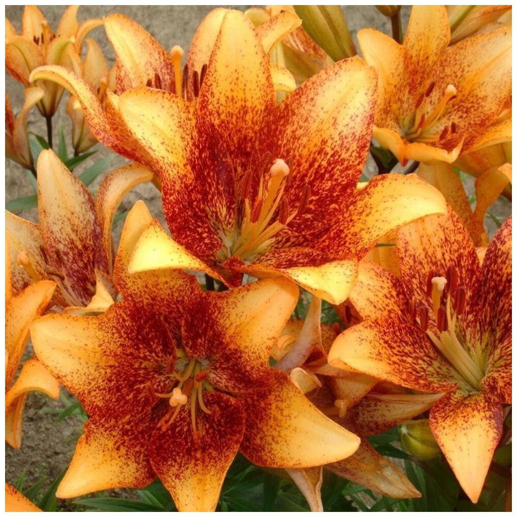 - Характеристики КРУПНЫЙ, оранжевый с темно-красным густым крапом, диаметр цветка 20-22 см