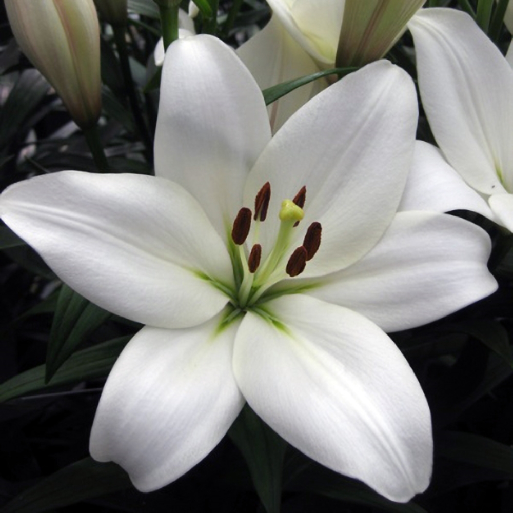 Лилия ЛА-гибрид Вадалио - цветок чисто-белый с зеленой звездой в центре, диаметр 15 см. Высота растения 95 см. ЛА (LA)-гибриды - это гибриды между длинноцветковыми (Longoflorum) и азиатскими (Asiatic) лилиями. Они неприхотливы и устойчивы к неблагоприятным погодным условиям. Некоторым сортам присущ слабый аромат. Поэтому Лилия ЛА-гибрид Вадалио ценятся в первую очередь за выносливость, неприхотливость, красоту и высокий коэффициент размножения.