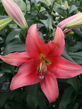 Лилия Visa Versa - большой очень красивый цветок. Его размеры достигают 20-25 см. Окрас цветка ярко-розовый, малиновый. Зацветает сорт в июле - августе. Высота взролого растения - 90-100 см. Сорт зимостойкий.
