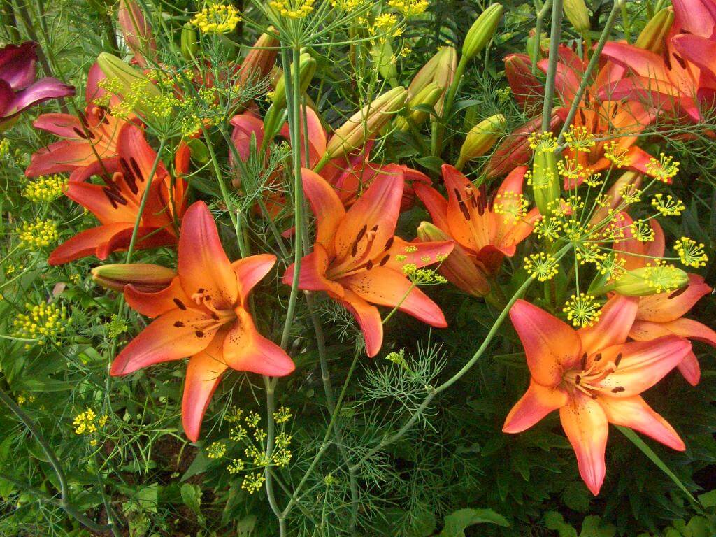 Лилия Royal Sunset является одним из самых лучших сортов! Золотистые цветы лилии с красновато-розовыми кончиками лепестков и центром, окрашенным в цвет дыни, редким окроплением темные пятна красного дерева к горлу. Лилия развивается из одной луковицы и имеет один сильный стебель, на верхушке которого распускаются цветы. Зацветают лилии в конце июня – начале июля, срезанные цветы долго сохраняются в вазе.