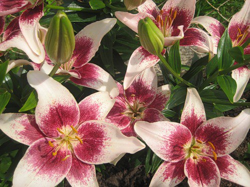Лилия Strawberry and Cream - одна из самых ярких и необычайных лилий. Она зацветает самая первая из всех групп, очень неприхотлива, растет фактически на любых почвах. Обладает повышенной зимостойкостью и устойчивостью к вредителям и болезням. Но главным их достоинством является очень необычайные, насыщенные цветки. Окрас цветков белый с красным густым крапом возле горла. При этом количество соцветий может достигать 25-30, поэтому даже один цветок представляет очень необычный и дорогой букет. Высота растения - 100 см, диаметр цветка - 12-18 см.