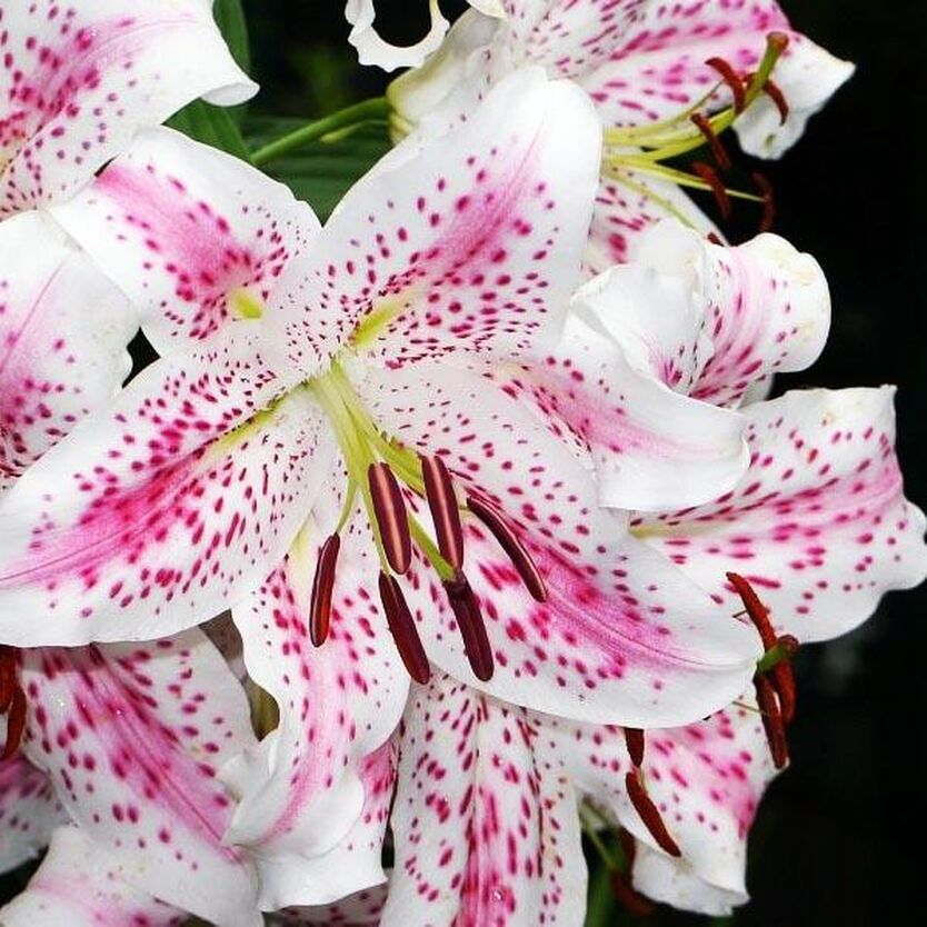 Луковицы лилии восточной Мадлен (Lilium oriental hybrid Madelaine) добавят свежести в любую цветочную композицию. Главная особенность этого сорта — крупные (до 23 см в диаметре) цветы оригинальной расцветки. Их лепестки белые, с ярким малиновым крапом, более темным и крупным к центру и светлым к кайме. Период цветения наступает во второй половине лета. Лилия Мадлен отлично подходит для среза. Бутоны распускаются на длинных (до 120 см) прочных стеблях, а затем долго хранятся и не увядают при транспортировке. Цветы Лилии восточной Мадлен можно выращивать в открытом грунте — при минимальном уходе (поливе, внесении удобрений, укрытии на зиму) куст может оставаться на одном месте до 5 лет.