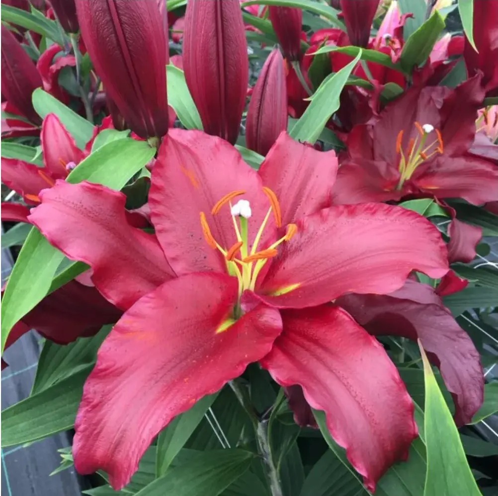 Луковицы лилии восточной Петролия (Petrolia) должны быть в коллекции садоводов, ценящих строгую утонченность и изысканность. На густо облиственном стебле высотой 90 сантиметров раскрываются крупные цветы с блестящими волнистыми лепестками. Цвет их насыщенный, бордовый, с небольшим желто-зеленым пятном в горловине. Тёмный оттенок лепестков лилии смотрится ярче на фоне изумрудных листьев. Цветение наступает во второй половине лета и длится около месяца. Лилия восточная Петролия подходит для срезки. Лилию сорта Петролия рекомендуется высаживать в кружевной тени, чтобы лепестки не теряли интенсивности окраски на ярком солнце. Остальной уход за растением стандартный.