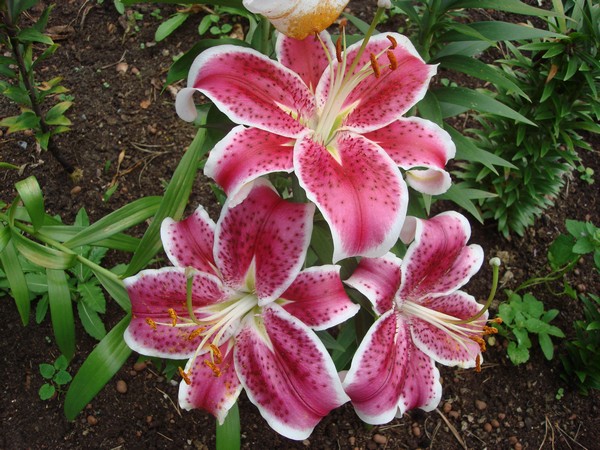 Лилия Starfighter - восточный гибрид, является просто ошеломляющей с соблазнительно богатым ароматом. Ярко-коралловая красавица с крупными цветами диаметром 14-16 см, с белой каймой и с многочисленными веснушками по всей длине лепестков. Лилия развивается из одной луковицы и имеет один сильный стебель, на верхушке которого распускаются цветы. Зацветают лилии этого сорта в конце июня – начале июля, срезанные лилии долго сохраняются в воде.