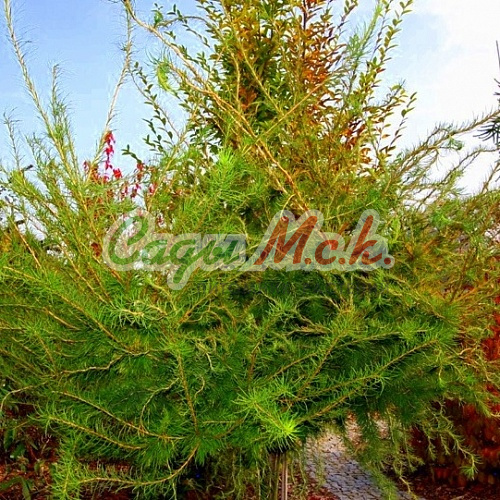 Очень декоративный сорт с нерегулярной плакучей кроной. Хвоя нежная, весной и летом - голубовато-зеленая, а осенью - золотистая. Высота взрослого растения до 2 м.